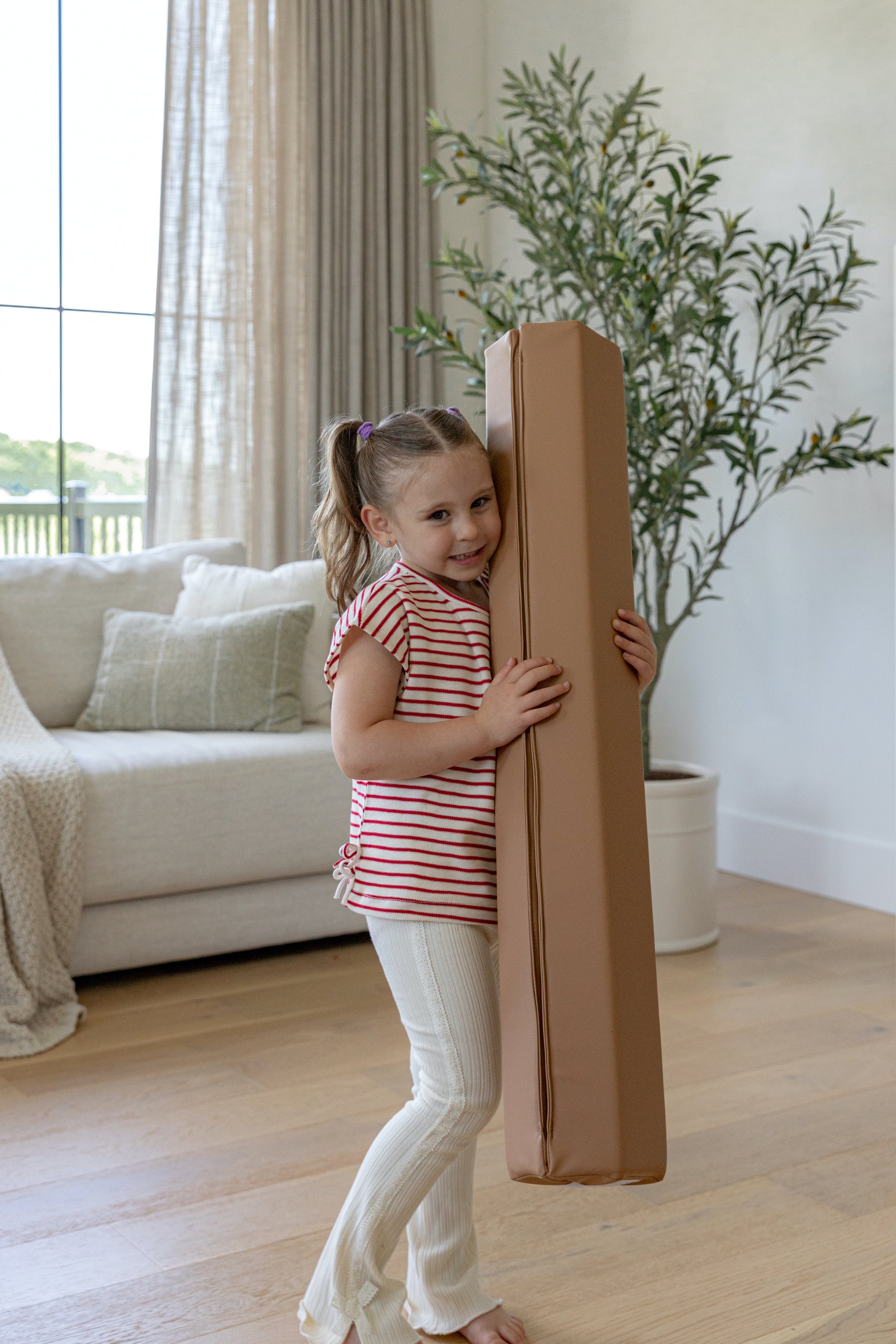 Our foam balance beam is perfect for obstacle courses, to practice their favourite gymnastics moves or as a bridge or ramp for open ended play with cars and dolls. It's made out of our sturdy yet soft foam, making it the perfect surface to challenge your little one's balance while providing a soft place for landing. The best part? The Beam folds up to easily tuck under the couch or in a corner when done playing!