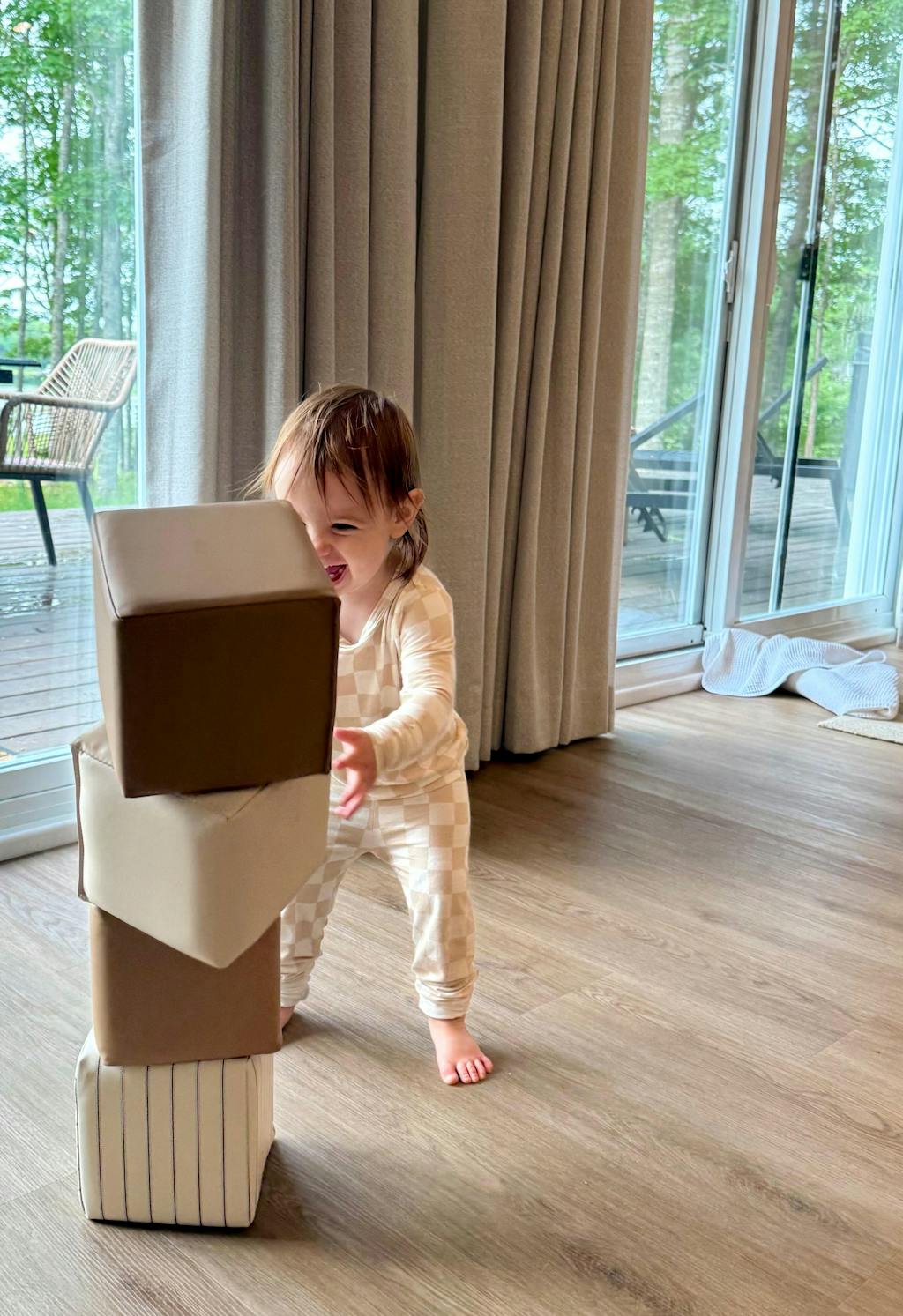 Our Stackers are a set of 12 versatile soft foam blocks designed for kids of all ages. Stack them high, toss them around, or construct towering structures. Unlock the potential of open-ended play with these safe, soft blocks that are easily wipeable and look pretty sitting out in any room.