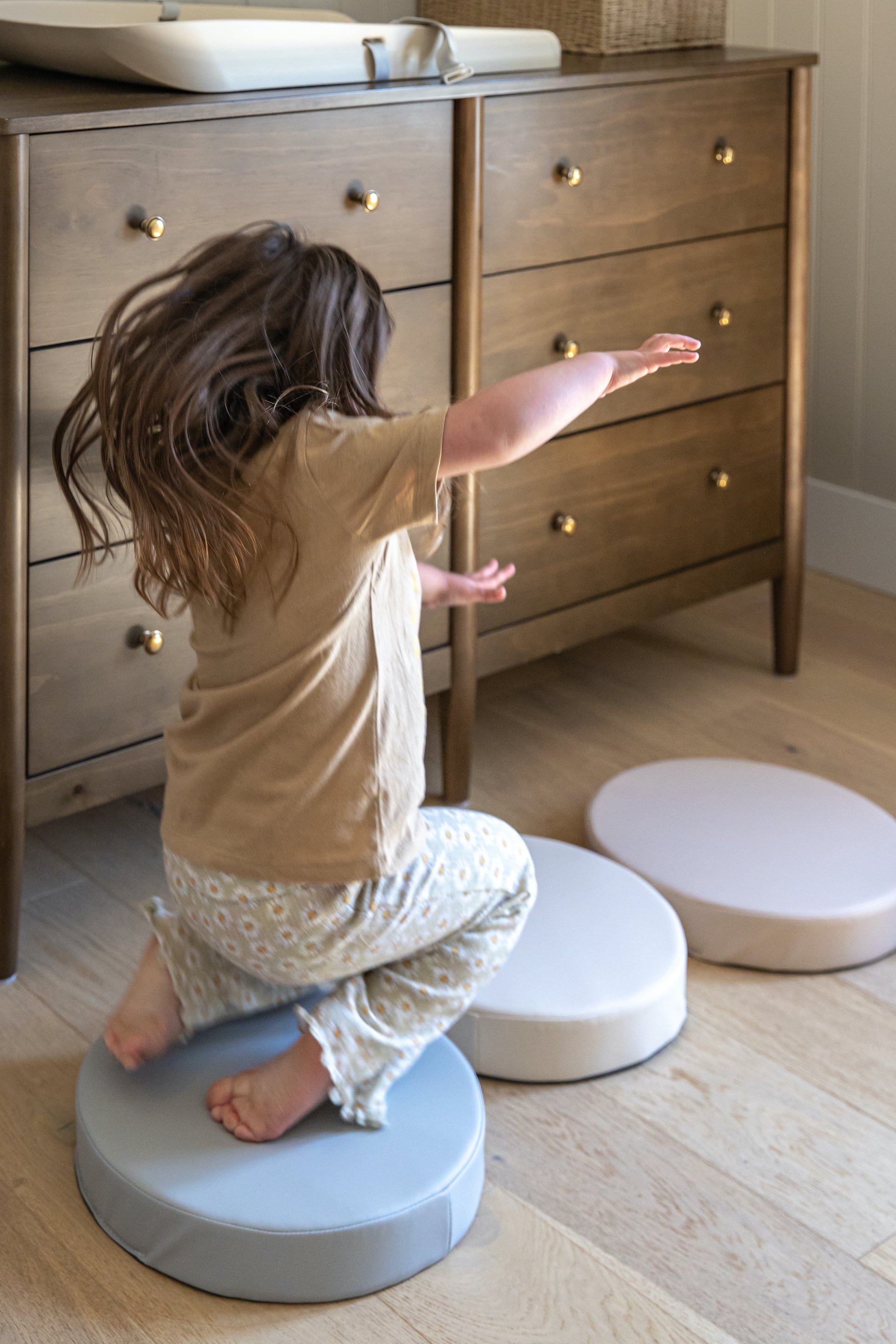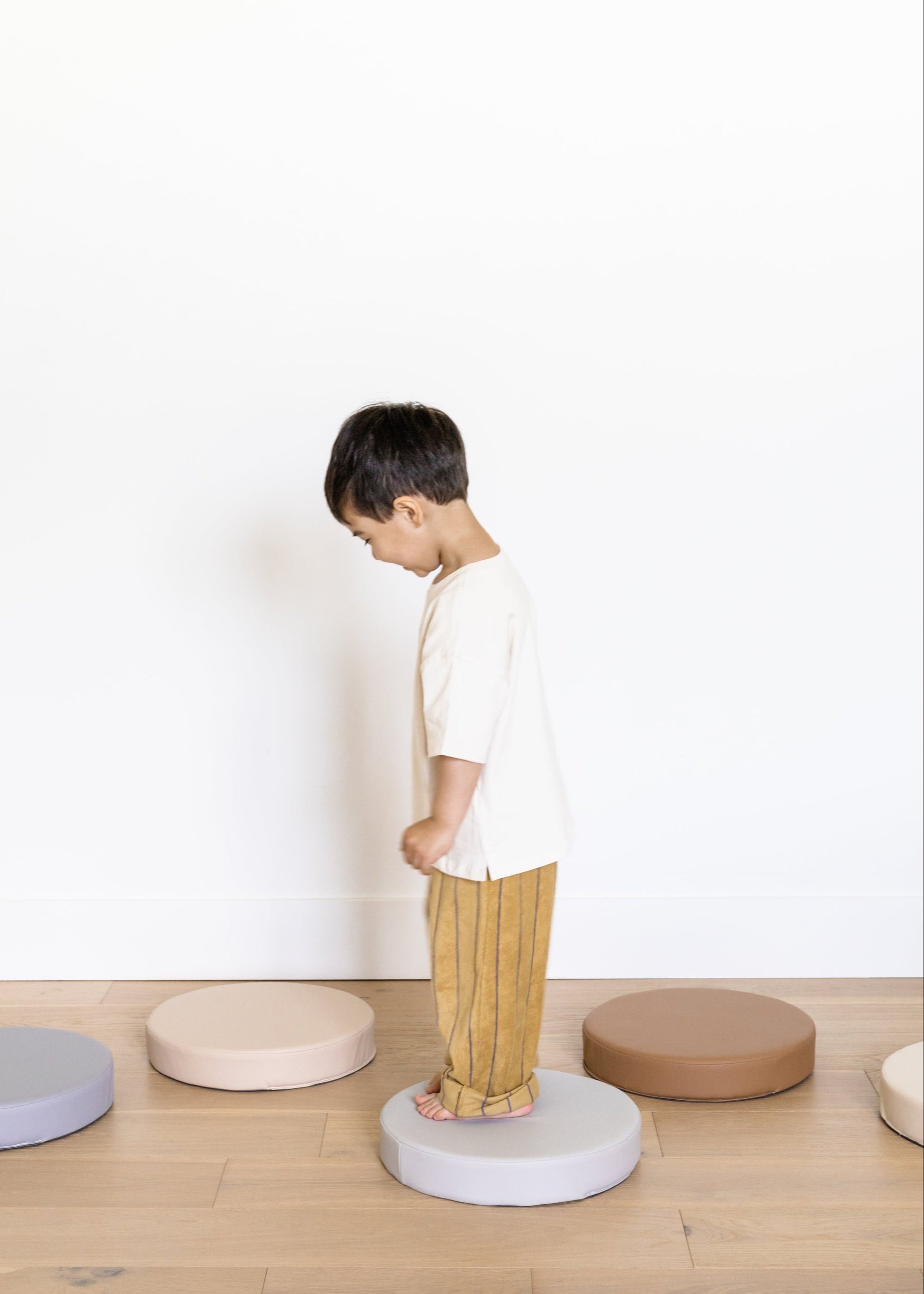My 20 month old son loves his steppers! He uses them for obstacle courses, as a pretend steering wheel, a seat cushion and often “showcases” his cars on them. The quality is amazing. The colours are gorgeous.