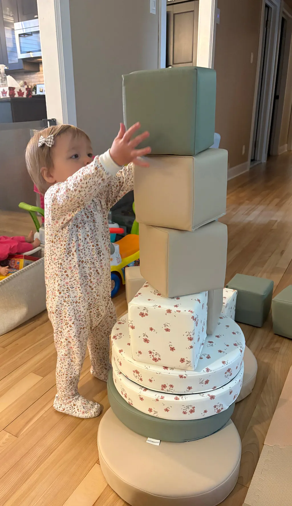 Bought these steppers for my 20 month old and she is obsessed with them! I can already tell they are going to be so great to help with her balance and boost her confidence with stepping up and down! Bought the Sienna pattern which is beautiful to match the blocks we bought previously.